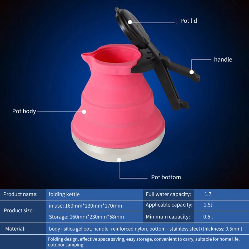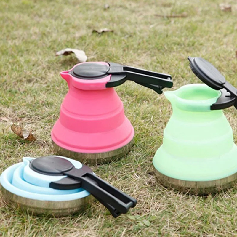 1.5L Easy Carry Folding Silicone Kettle Water Pot Hiking Travel Kitchen Tools Tea Coffee Kettle Out