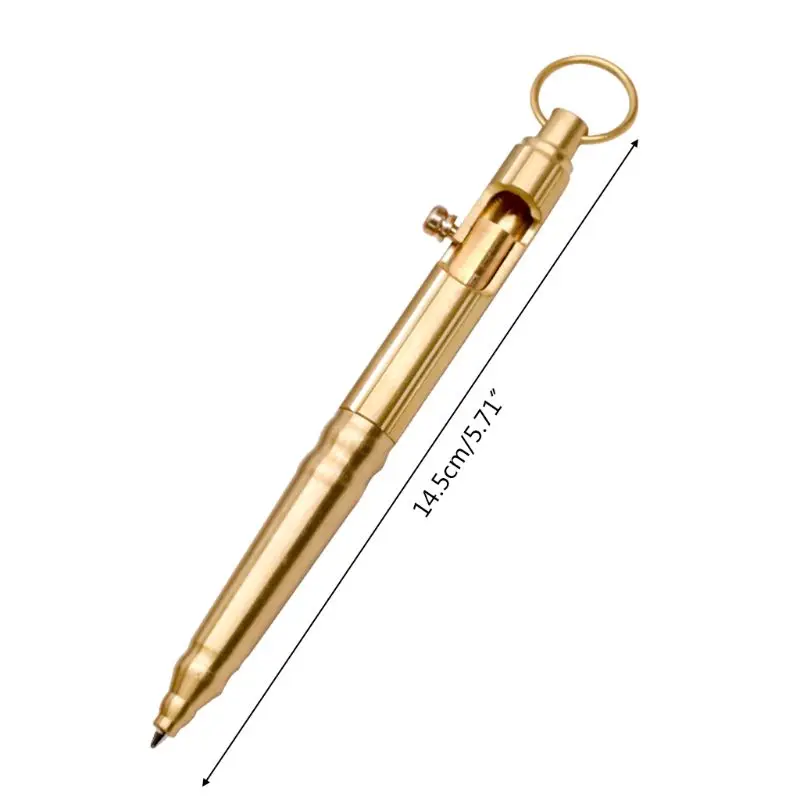 Brass Handmade Pen Creative Retro Bolt TypeTactical Pen Hanging Ring EDC Outdoor Pen